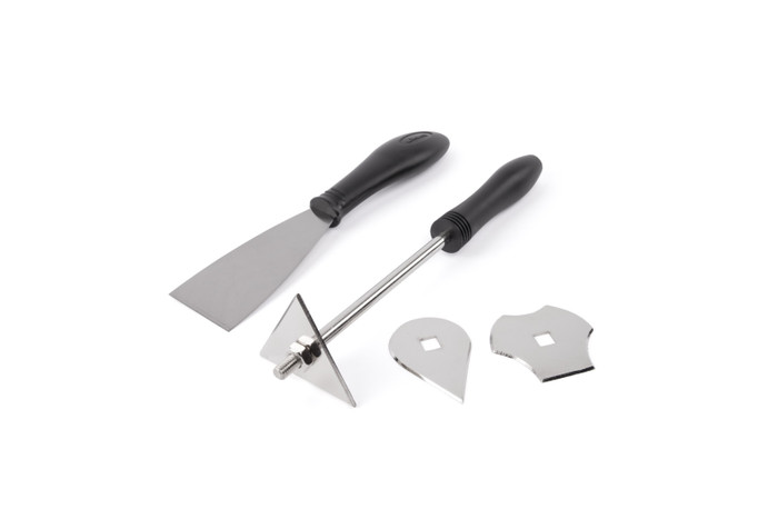 - Manico + 3 lame singole per diversi tipi di superfcie