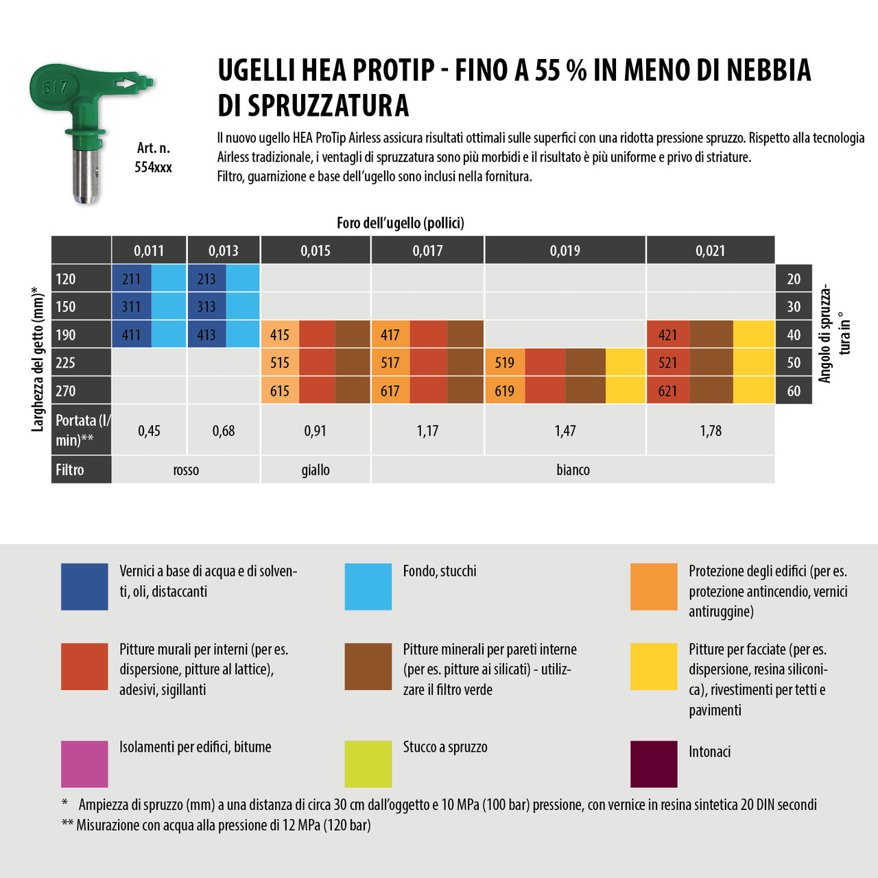 Gli ugelli HEA ProTip sono ugelli airless rivoluzionari di WAGNER e sono adatti per un'ampia gamma di materiali come primer, vernici, dispersioni, vernici al lattice, nonché per la protezione dalla fiamma e dalla corrosione.